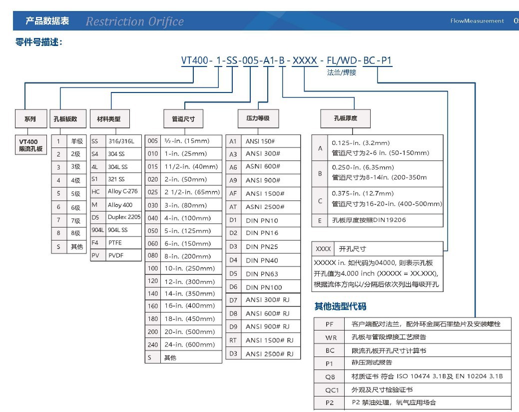 VT400F4节流孔板选用与使用建议