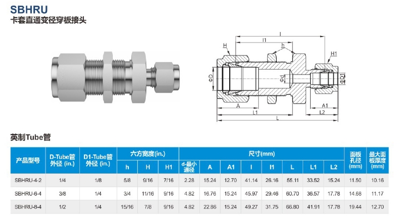 特点:是穿板接头,是两端卡套连接,两端的卡套规格不同,默认材质316L。