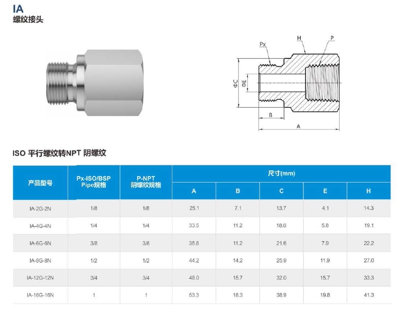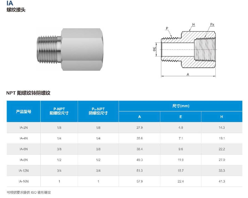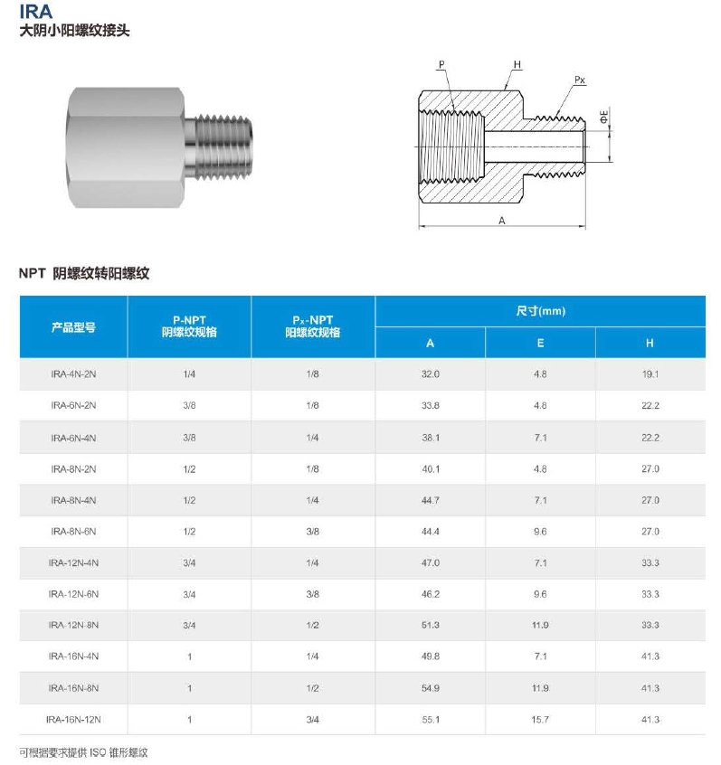 西安易智通流体控制有限公司主要生产:NPT外丝转内丝接头、ISO/PT平行螺纹内丝转NPT螺纹外丝等,其他规格均可加工定制。