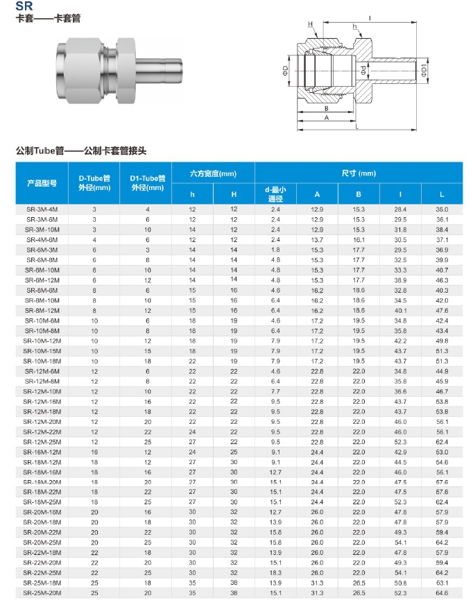 特点:一端是公制Tube管,一端是公制卡套接头。