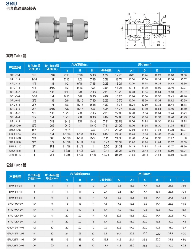 特点:两端都是卡套连接,但是两边的规格尺寸不一样;也有英制和公制之分。